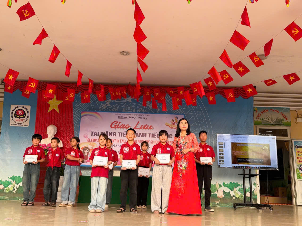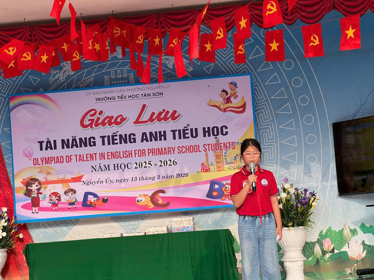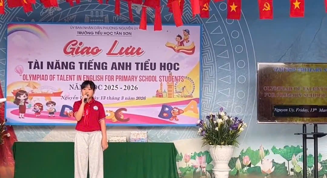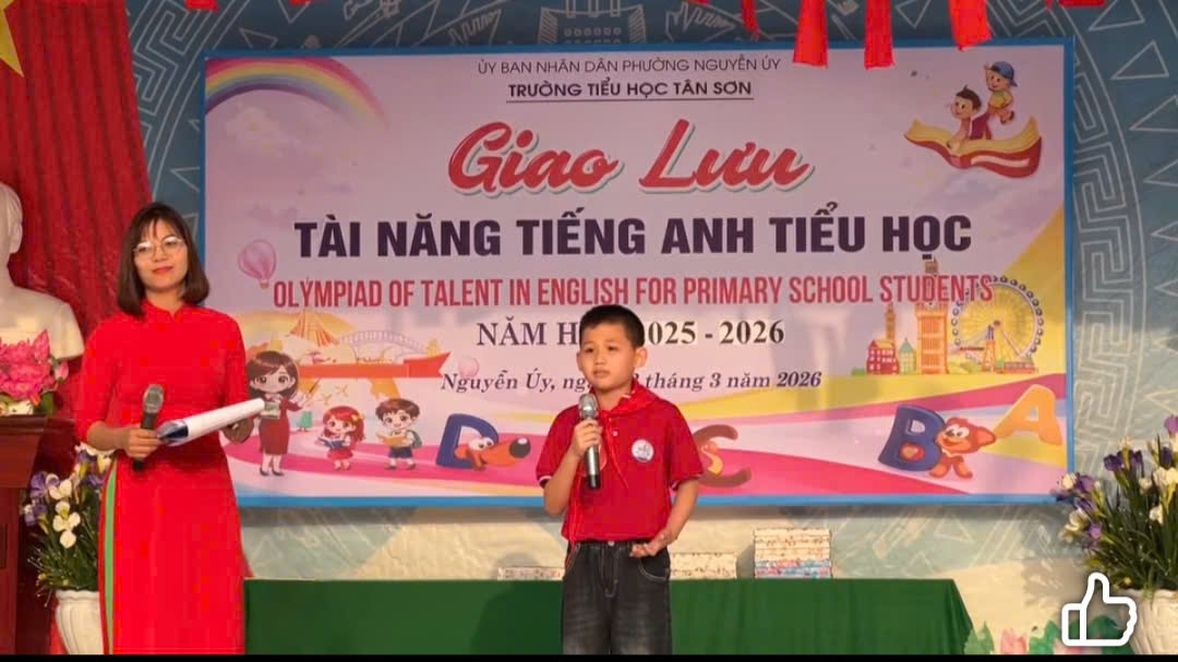 Nhằm tạo sân chơi bổ ích giúp học sinh phát huy năng lực học tập môn Tiếng Anh, đồng thời khơi dậy niềm yêu thích ngoại ngữ trong nhà trường, ngày 13/3/2026, Trường Tiểu học Tân Sơn đã tổ chức Buổi giao lưu Tài năng Tiếng Anh bậc Tiểu học cấp trường với sự tham gia hào hứng của đông đảo học sinh.